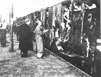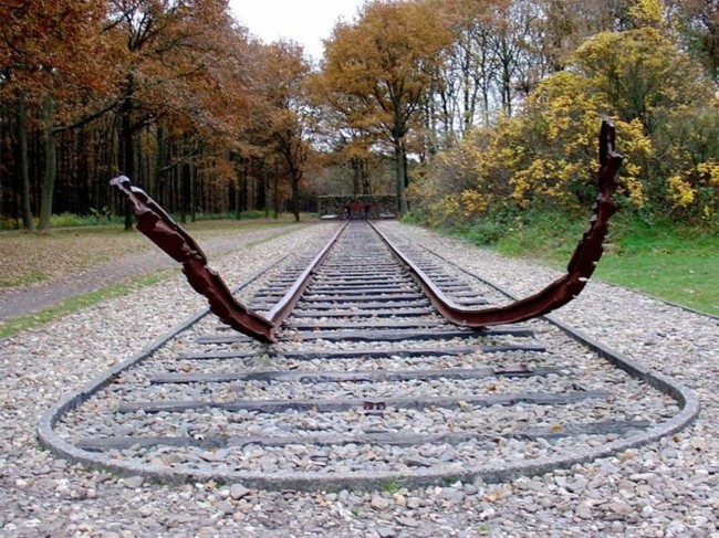 ![]() Au début de 1942, les Allemands agrandissent le camp. En juillet, la police de sûreté allemande, assistée par une compagnie SS, et la police militaire néerlandaise prennent le contrôle de Westerbork. Erich Deppner en est nommé commandant; il l'utilise désormais comme base de départ pour les déportations vers l'Est, les trains partant tous les mardis. De juillet 1942 à septembre 1944, 97 776 Juifs sont déportés de Westerbork: 54930 vers Auschwitz en 68 convois, 34 313 vers Sobibor en 19 convois, 4 771 vers Thersienstadt en 7 convois et 3 762 vers Bergen-Belsen en 9 convois. Dans le dernier de ces convois, le 3 septembre 1944, se trouve la famille Frank, parmi plus de mille personnes. ![]() Au début du mois d'avril 1945, à l'approche des troupes alliées, les Allemands abandonnent le camp. Westerbork est libéré le 12 avril 1945 par l'armée canadienne qui y trouve 876 prisonniers. Les dernières baraques du camp sont détruites en 1971. En 1992, des travaux de reconstruction sont effectués pour donner au site un caractère informatif. 102 000 pierres sont placées sur l'ancienne place de l'appel; elles symbolisent le nombre de déportés qui ne sont jamais revenus. ![]() |