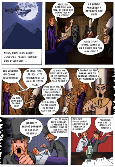 Par un de ces sauts de pensée si fréquents dans les rêves, j'entendis la voix fausse et enrouée du marchand de bric-à-brac, qui répétait, comme un refrain monotone, la phrase qu'il avait dite dans sa boutique avec une intonation si énigmatique : « Le vieux Pharaon ne sera pas content; il aimait beaucoup sa fille, ce cher homme. »